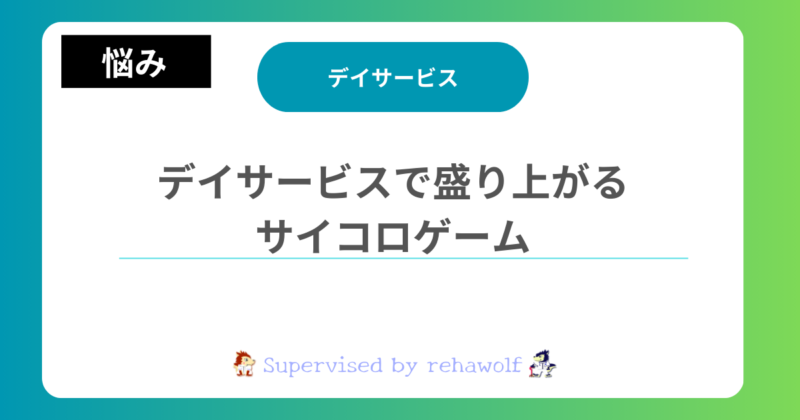 デイサービスでは、利用者が楽しみながら心身を動かせるように、さまざまなレクリエーションが取り入れられています。 その中でも「サイコロゲーム」は、準備が簡単で誰でも参加でき、場を盛り上げやすい定番のアクティビティです。 本記事では、デイサー... -