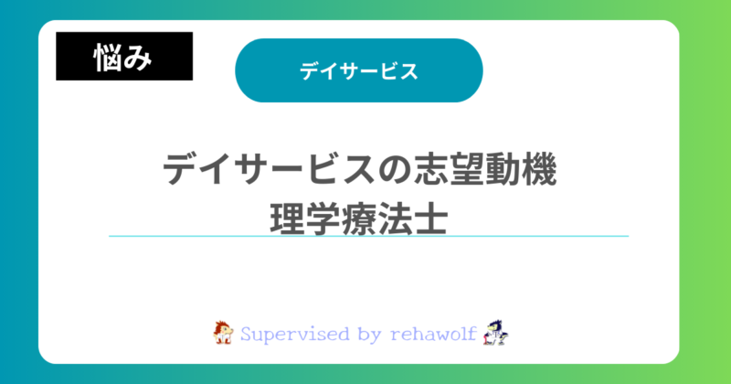 理学療法士(PT)がデイサービスへの就職や転職を考える際、必ず求められるのが「志望動機」です。 病院やクリニックと違い、デイサービスは在宅生活を送る高齢者を対象にリハビリや日常生活支援を行う場です。 そのため志望動機でも「なぜデイサービスを... -