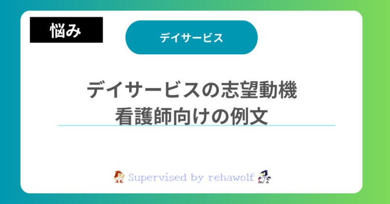 看護師がデイサービスへ転職や就職を希望する際、履歴書や面接で必ず聞かれるのが「志望動機」です。 病院やクリニックでの経験が中心の看護師にとって、介護施設であるデイサービスを選んだ理由を明確に伝えることはとても重要です。 本記事では、デイサ...