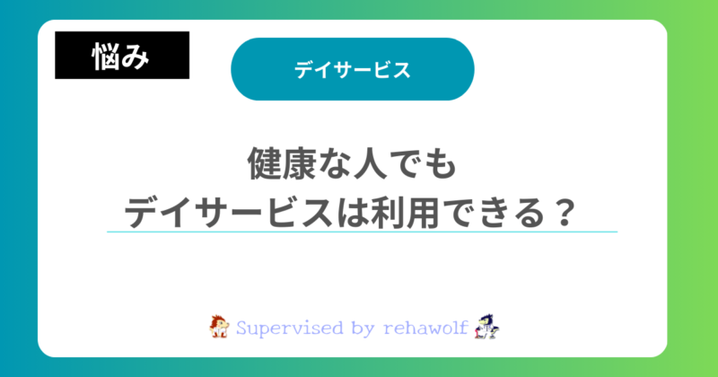 「デイサービスは介護が必要な高齢者が利用するもの」というイメージを持つ方は多いでしょう。 しかし中には「健康な人でも行けるの?」「まだ自分は元気だけど利用できるのか気になる」という声もあります。 実際には、デイサービスの利用には一定の条件... -